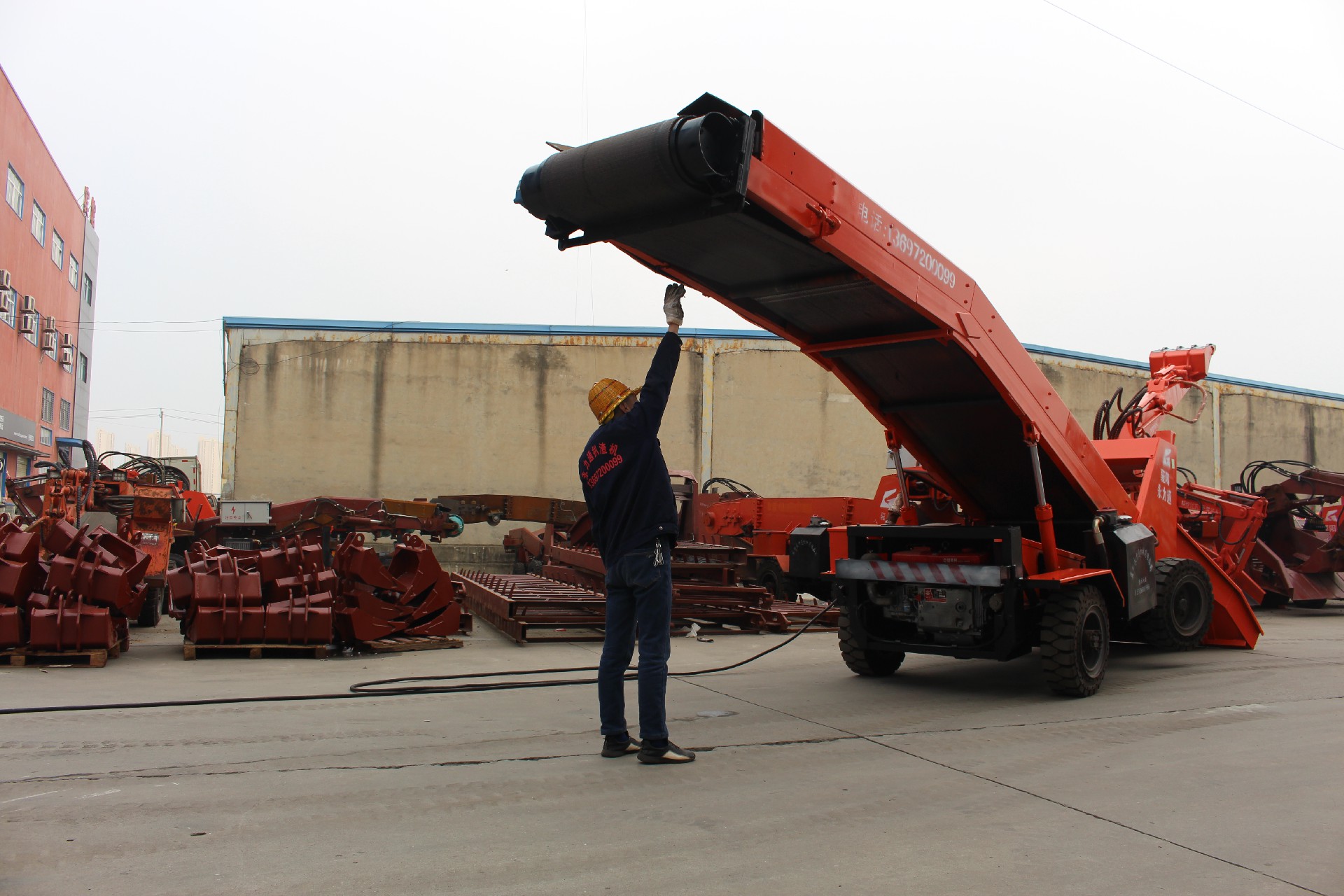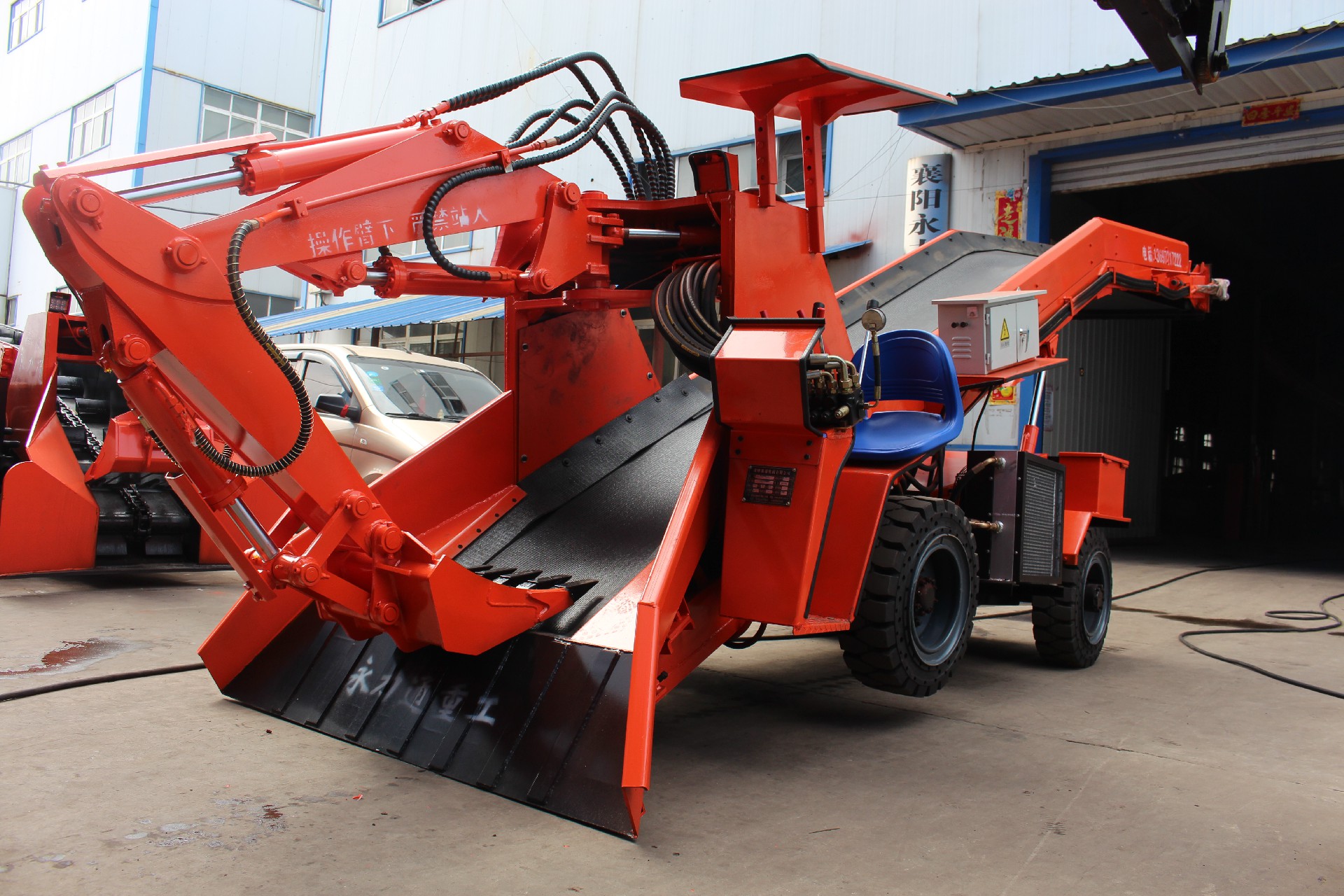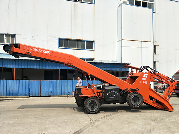120型輪胎式扒渣機(jī),系輪胎式液壓馬達(dá)驅(qū)動(dòng)行走,行走速度2.5千米/小時(shí)左右,其優(yōu)點(diǎn)在于轉(zhuǎn)場速度快、靈便,能用于更換工作面。前后車橋同時(shí)驅(qū)動(dòng)行走,推力大便于物料聚集,不需人工輔助清理工作面,減輕了工人的勞動(dòng)強(qiáng)度。液壓(電動(dòng))滾筒皮帶輸送物料裝車,帶寬800mm的阻燃耐磨輸送帶,輸送速度可達(dá)0.8米/秒,輸送效率高,噪音低無污染,節(jié)能環(huán)保等特點(diǎn)。