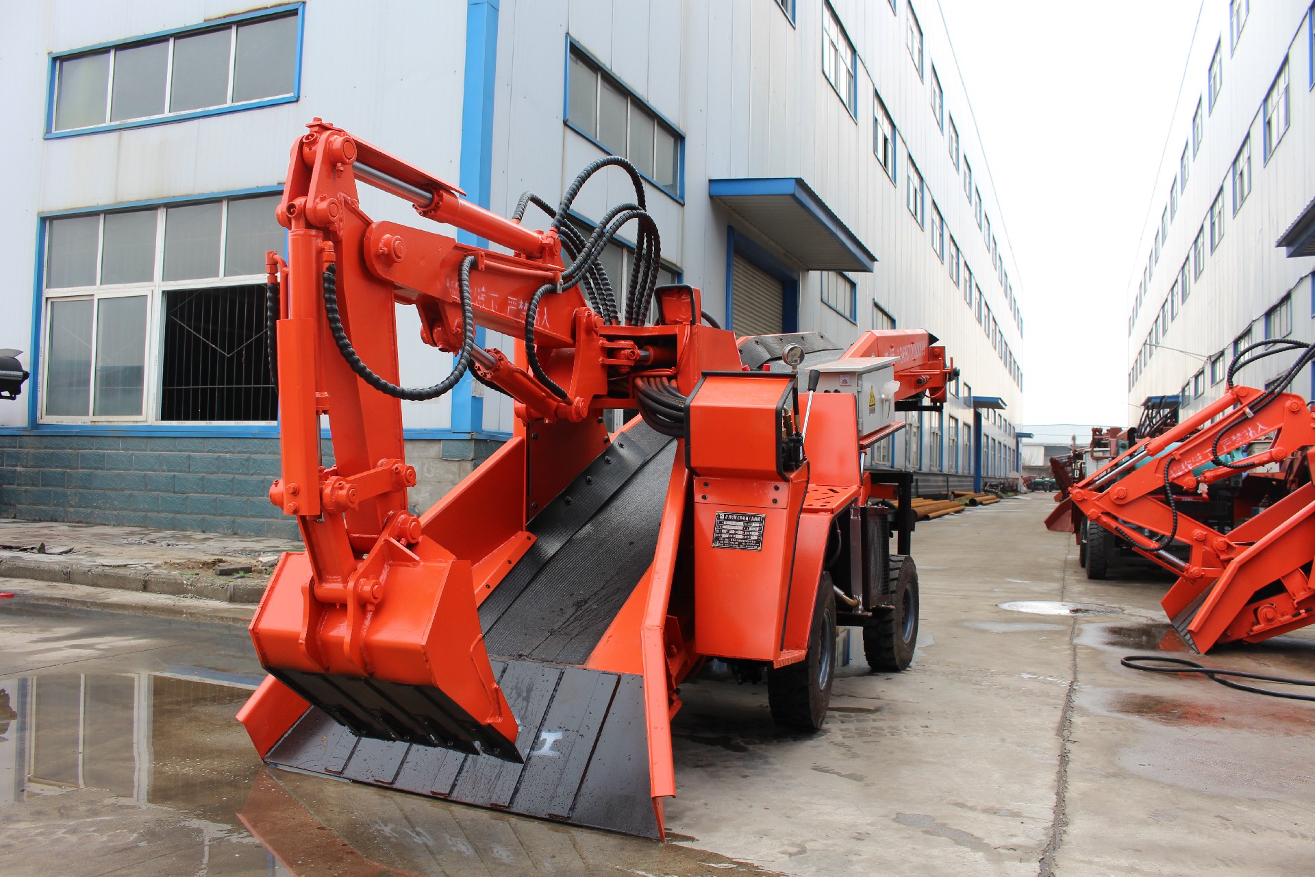 ZWY-60型輪式巷道扒渣機大臂使用14mm厚的鋼板,小臂使用12mm厚的鋼板。采用附屬裝置結構設計,可以極大的增加挖掘距離、挖掘深度和挖掘高度。大小臂以及主軸的所有鏈接部位都采用了石墨耐磨銅套,減少部件之間的磨損,增加使用壽命。通過合理設計的挖斗連接板增加使用時的挖掘力。