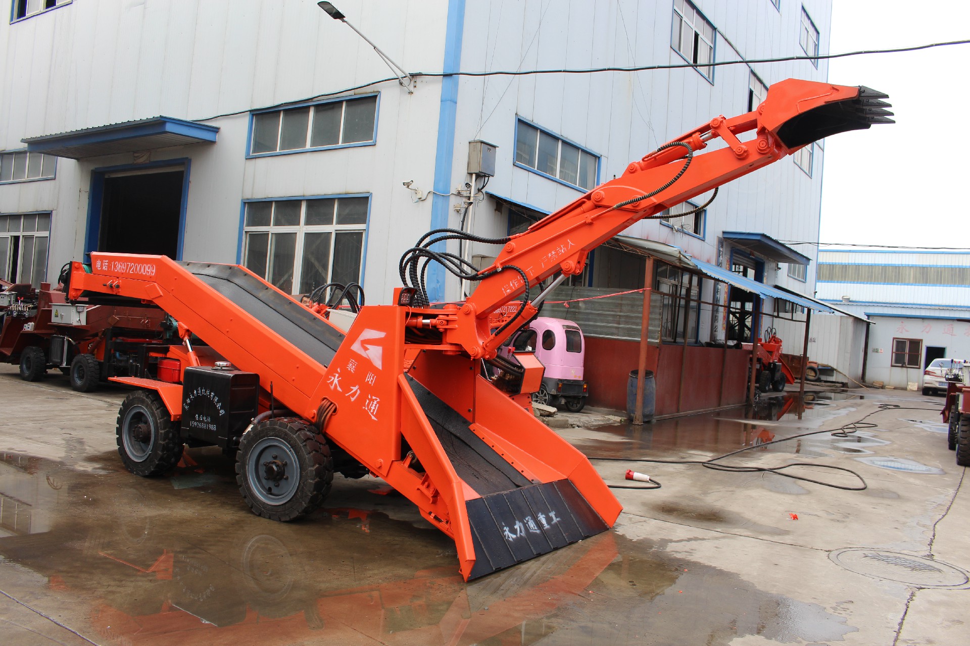 1.機械部分:整機結構緊湊,配置高,行走驅動扭矩大,爬坡能力強。